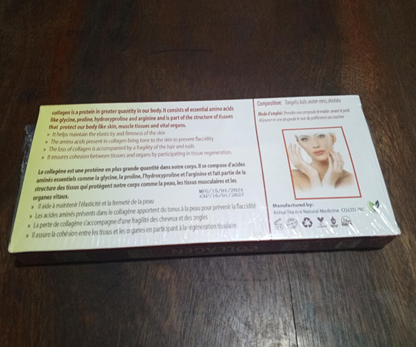 LE COLLAGÈNE pour la peau, les cheveux et les ongles aide à maintenir l'élasticité et la fermeté de la peau. Assure la cohésion entre les tissus et les organes en participant à la régénération des tissus. Aide au blanchiment de la peau et à l'anti-âge. COLLAGEN for Skin, Hair and Nails helps maintains the elasticity and firmness of the skin. Ensures cohesion between tissues and organs by participating in tissue regeneration. Helps to skin whitening and anti-aging.